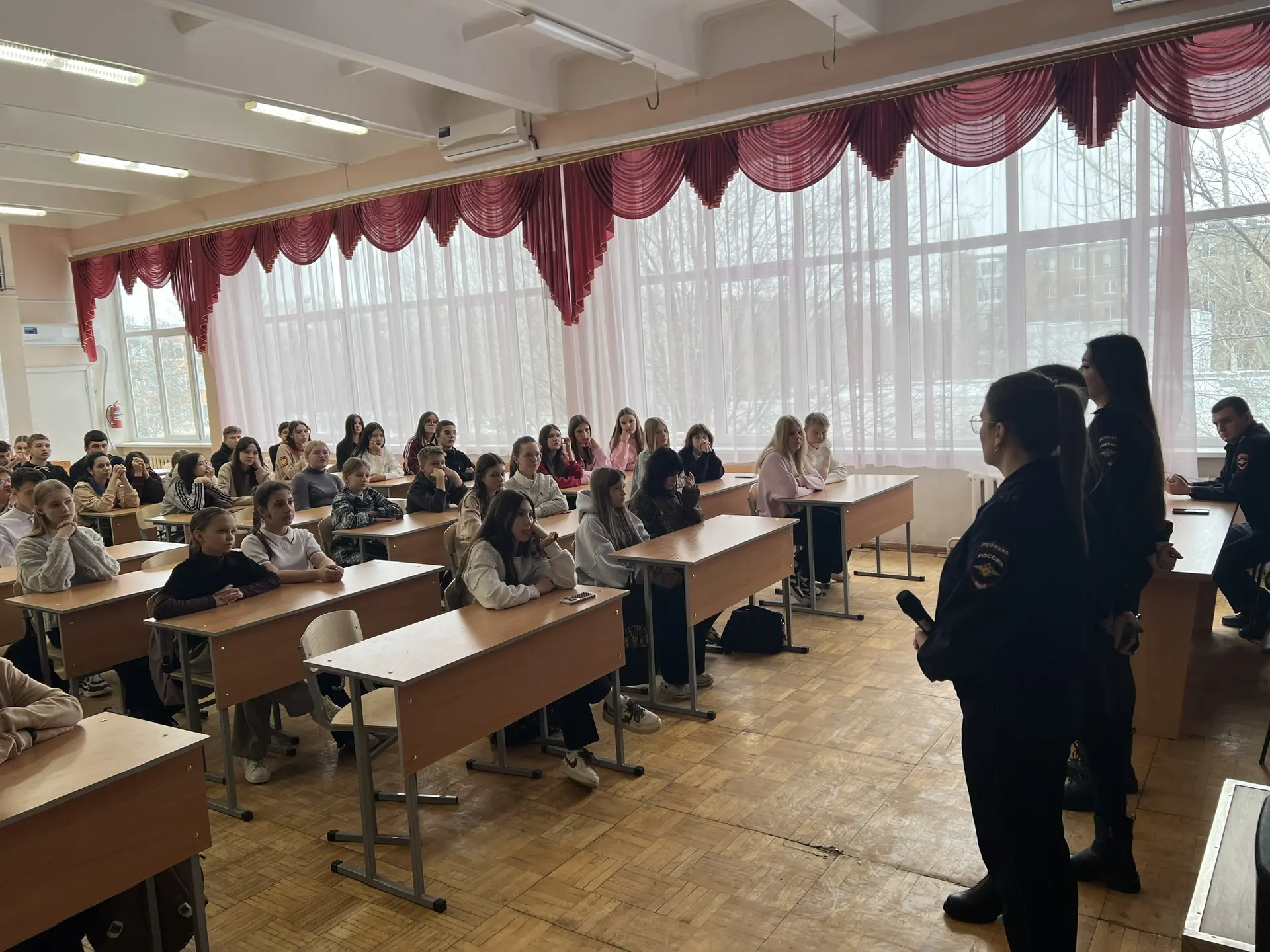 В соответствии с графиком проведения профилактических мероприятий в образовательных учреждениях субъектами городской системы профилактики городского округа – город Волжский на 2025-2026 учебный год, 28.01.2026 с обучающимися 5-11 классов проведены профилактические беседы инспекторами ПДН ОПДН ОУУП и ПДН ОП № 3 Управления МВД России по городу Волжскому: лейтенантом полиции Матюшковой Ю.А., лейтенантом полиции Семиглазовой Ю.М., лейтенантом полиции Кораблиной К.А. и инспектором (по пропаганде безопасности дорожного движения) отдела Госавтоиспекции Управления МВД России по городу Волжскому старший лейтенант полиции Скоробогатовым А.С. |